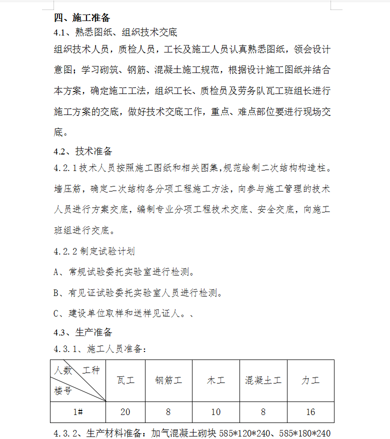 组织技术人员,质检人员,工长及施工人员认真熟悉图纸,领会设计意图;学习砌筑、钢筋、混凝土施工规范,根据设计施工图纸并结合本方案,确定施工工法,组织工长、质检员及劳务队瓦工班组长进行施工方案的交底,做好技术交底工作,重点、难点部位要进行现场交底。