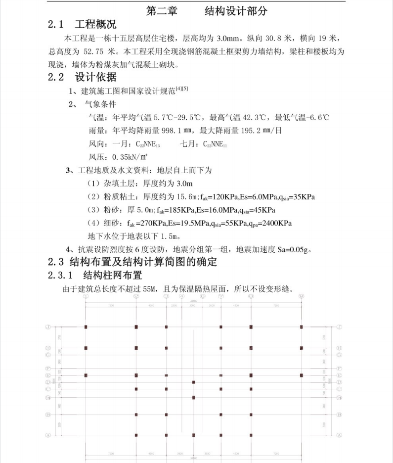 ±¾¹¤³ÌÊÇÒ»¶°Ê®Îå²ãסլ¥£¬²ã¸ß¾ùΪ3.0m¡£ ²ÉÓøֽî»ìÄýÍÁ¿ò¼Ü¼ôÁ¦Ç½½á¹¹£¬½¨Öþ¹¤³ÌµÈ¼¶Îª¶þ¼¶¡¢ÄÍ»ðµÈ¼¶Îª¶þ¼¶£¬ºÏÀíʹÓÃÄêÏÞΪ50Ä꣬ÎÝÃæ·ÀË®µÈ¼¶Îª¶þ¼¶£¬±¾µØÇøÎª6¶È¿¹ÕðÉè·ÀÇø¡£Éè¼Æ±ê¸ß:ÊÒÄÚÉè¼Æ±ê¸ßΪʿ0.000£¬ÊÒÄÚÍâ¸ß²îΪ450 mm¡£Ç½Éí×ö·¨:ǽÉí²ÉÓ÷Ûú»Ò¼ÓÆø»ìÄýÍÁÆö¿é¡£ÄÚÍâǽ²ÉÓÃË«Ãæ·ÛË¢¡£