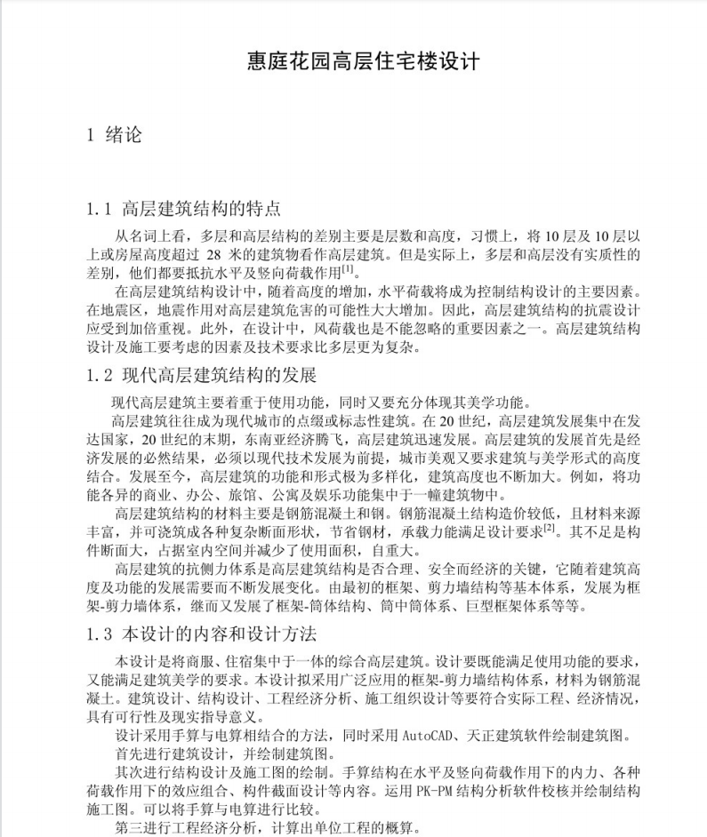 本次设计的建筑位于xx市某居住区,建筑设计适用、安全、经济、美观,占地面积约1200m2。设计方案为高层住宅楼,一楼主要为商服用房,其余层为住宅。该建筑结构方案为框架一剪力墙结构。建筑整体耐火等级为二级,使用年限达50-100年,符合二级建筑耐久年限。总建筑面积达16000m2。