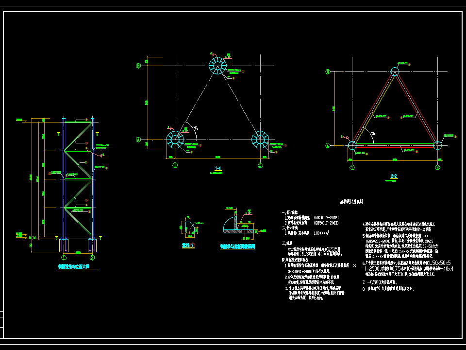点击进入下载三角钢管柱桁架广告牌结构施工图纸