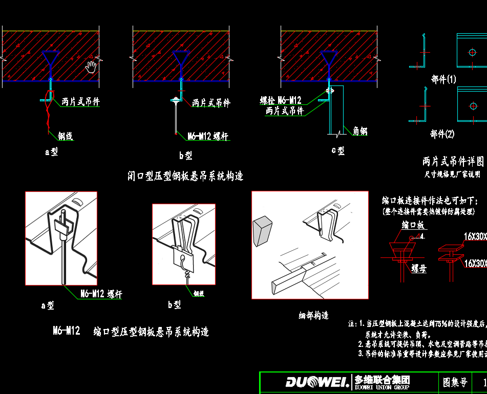 钢与混凝土组合楼板结构构造详图包含了普通楼承板、钢筋桁架式组合楼板的结构构造、楼承板常用规格尺寸参数、设计说明、连接节点、开洞做法、降板做法等全套工程做法明细,施工图可直接套用。