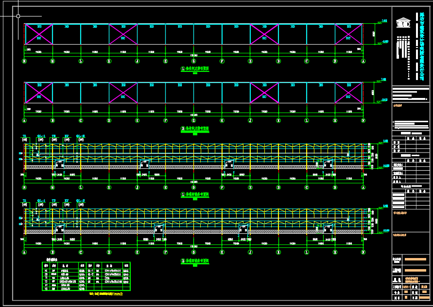钢结构门刚展厅施工图纸包括基础平面布置图、地脚螺栓布置图、屋面支撑平面布置图 、屋面檩条平面布置图 、柱间支撑布置图、墙面檩条布置图、墙面檩条布置图、刚架GJ-1立面图、节点图