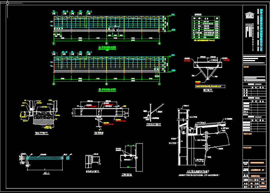 门式轻型钢结构汽车展厅结构施工图纸