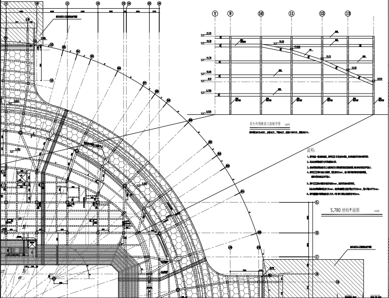 建筑整体规模由体育场、体育馆、游泳馆三大块组成。其中5500座的体育馆项目地上1~5层,无地下室,混凝上部分总高21.55m,钢结构屋面总高28.00m。