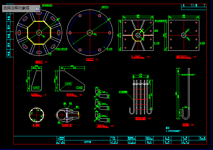 交通信号灯设计图包括标志总体设计图、法兰盘连接、基础设计图