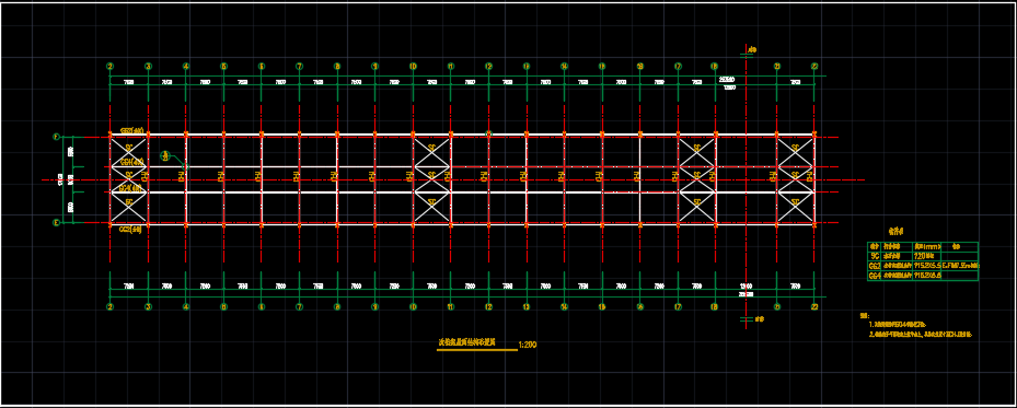 大型货场仓库钢结构设计施工图包括:一层平面图、屋面檩条、拉条布置图、次桁架屋面结构布置图、次桁架屋面檩条、拉条布置图、屋顶平面图等。