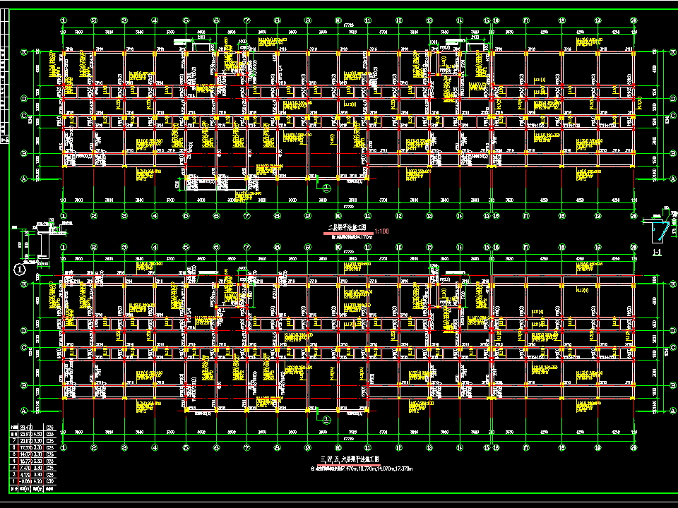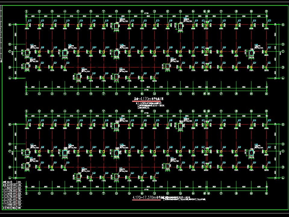 七层框架办公楼混凝土结构施工图纸包括孔桩平面布置图、地梁梁平法施工图、基础~4.170m柱平法施工图、17.370~20.670m柱平法施工图、二层板配筋平面图、三,四,五,六层梁平法施工图、七层板配筋平面图、屋面梁平法施工图等,供大家参考!