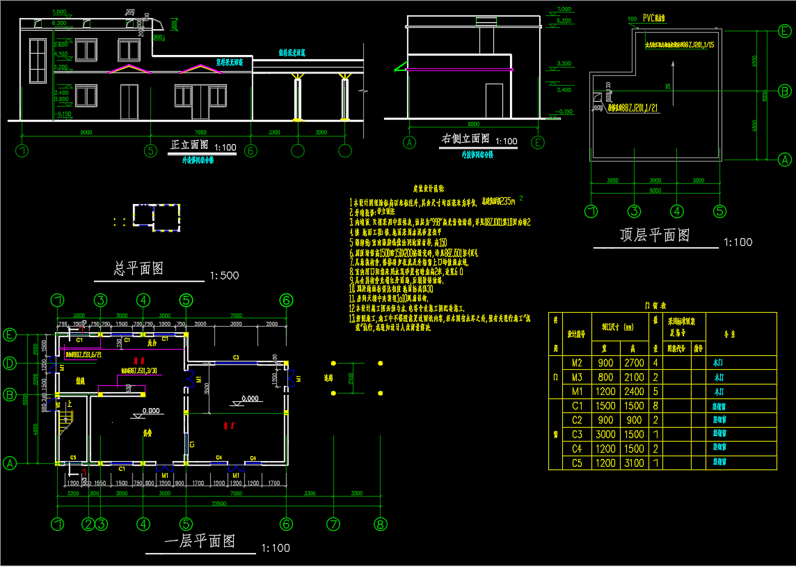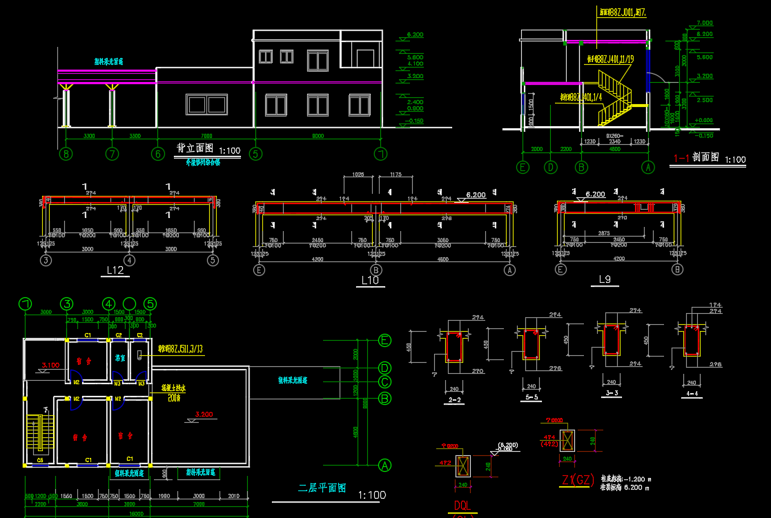 二层食堂建筑及结构施工图包括正立面图 ,右侧立面图 ,顶层平面图,一层平面图,背立面图 ,二层平面图,剖面图,二层结构平面图,屋顶结构平面图,基础平面布置图等