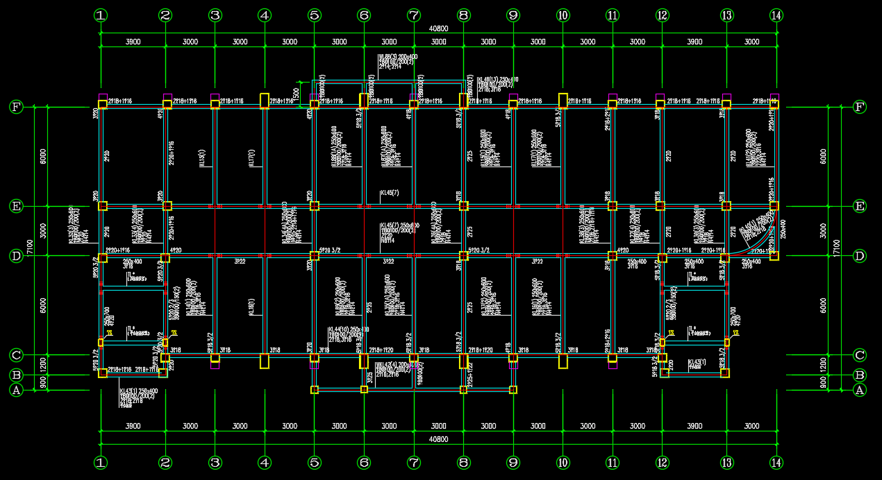 教学楼,地下一层地上五层的框架结构。总结构高度为22.700m。建筑结构安全等级为二级。设防烈度为7度(结构计算为6度,构造措施按7度,柱及框架梁的抗震等级为三级。本建筑结构设计合理使用年限为50年。