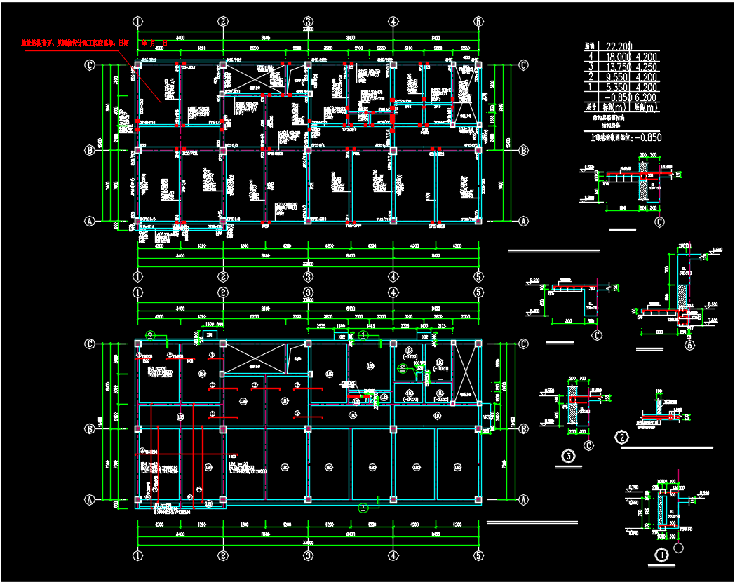 5层框架结构抗氧剂装置间结构施工图纸