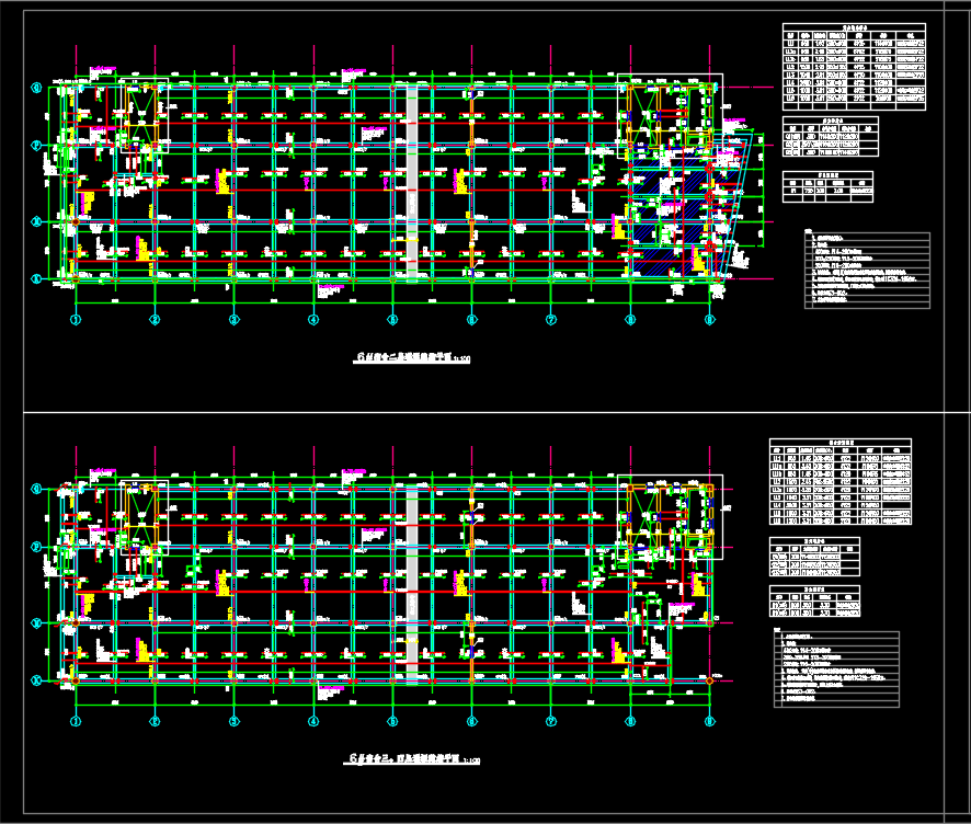 研发实验室及宿舍楼结构施工图纸包括6#宿舍二层、三层、四层墙柱、顶板、梁配筋平面、6#宿舍二至五层墙柱详图、6#宿舍基础结构平面、基础拉梁配筋平面、6#宿舍首层墙柱、顶板、梁配筋平面、6#宿舍首层墙柱详图、6#宿舍五层墙柱、顶板、梁配筋平面、7#9#研发实验室地下一层墙柱梁板结构平面、7#9#研发实验室二层墙柱梁板结构平面、7#9#研发实验室基础结构平面、7#9#研发实验室墙柱详图、7#9#研发实验室三四层墙柱梁板结构平面等