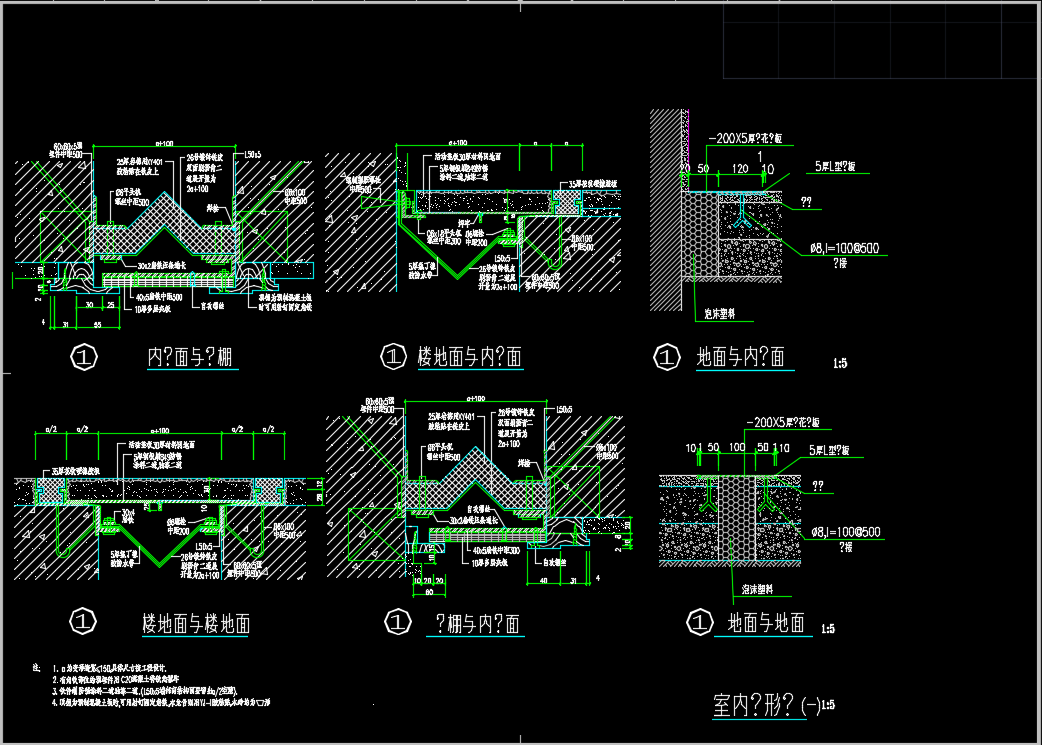 变形缝节点详图、大样图包括:顶棚墙面、 顶棚与墙面、楼地面与墙面 、楼地面与楼地面、内墙面与顶棚、楼地面与内墙面 、地面与内墙面 。