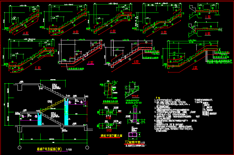 楼梯节点详图、大样图、配筋图