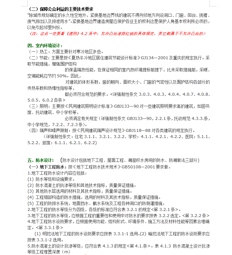 设计说明基本内容:(1) 编制依据:主管部门的审批文件、工程建设标准。(2) 工程概况:建设地点、用地概貌、建筑等级、设计使用年限、抗震设防烈度、结构类型、建筑布局、建筑面积、建筑层数与高度。(3) 主要部位材料做法:如墙体、屋面、门窗等(属于民用建筑节能设计范围工程可与(节能设计)段合并)。