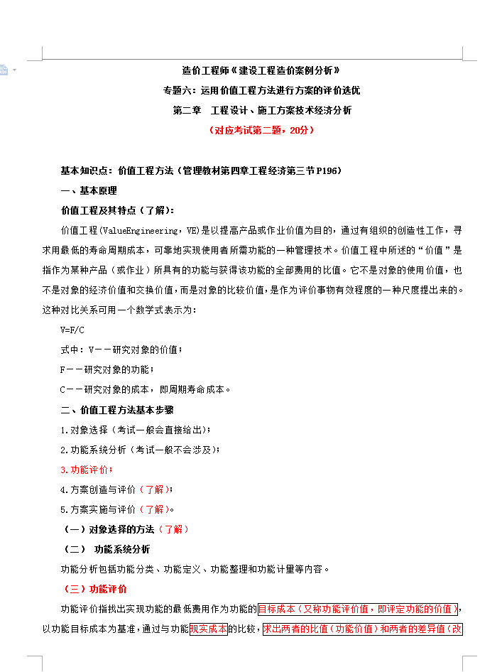本文为2018造价:运用价值工程方法进行方案的评价选优知识点汇总,供大家参考。