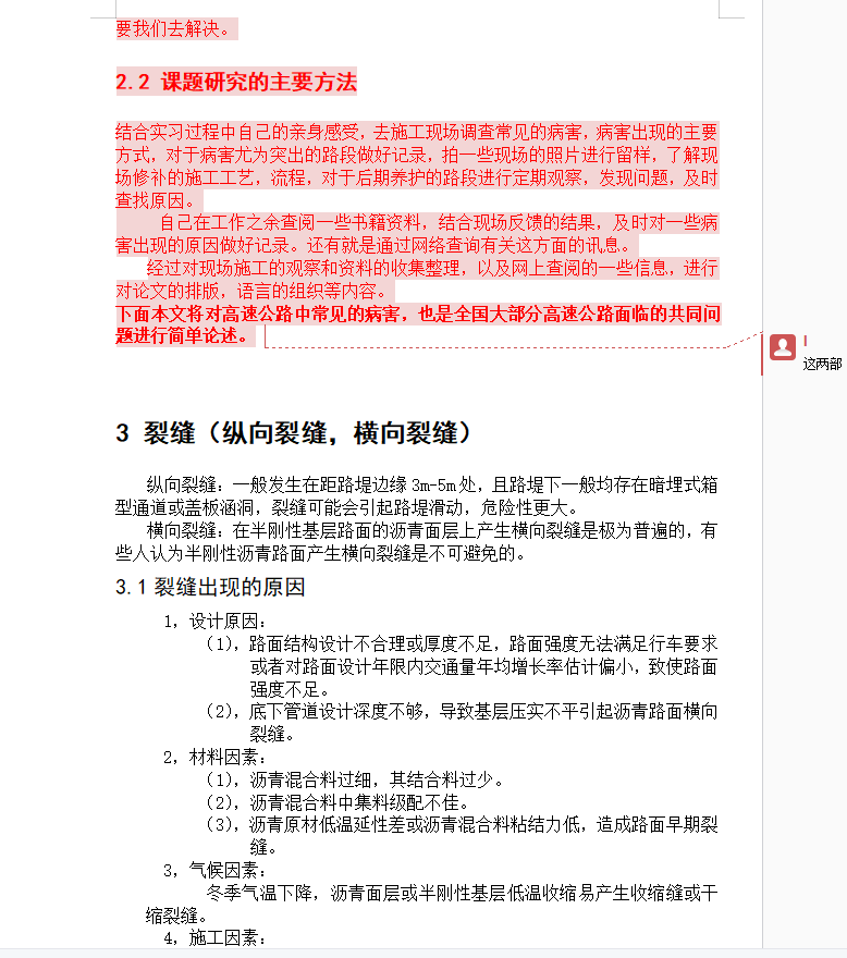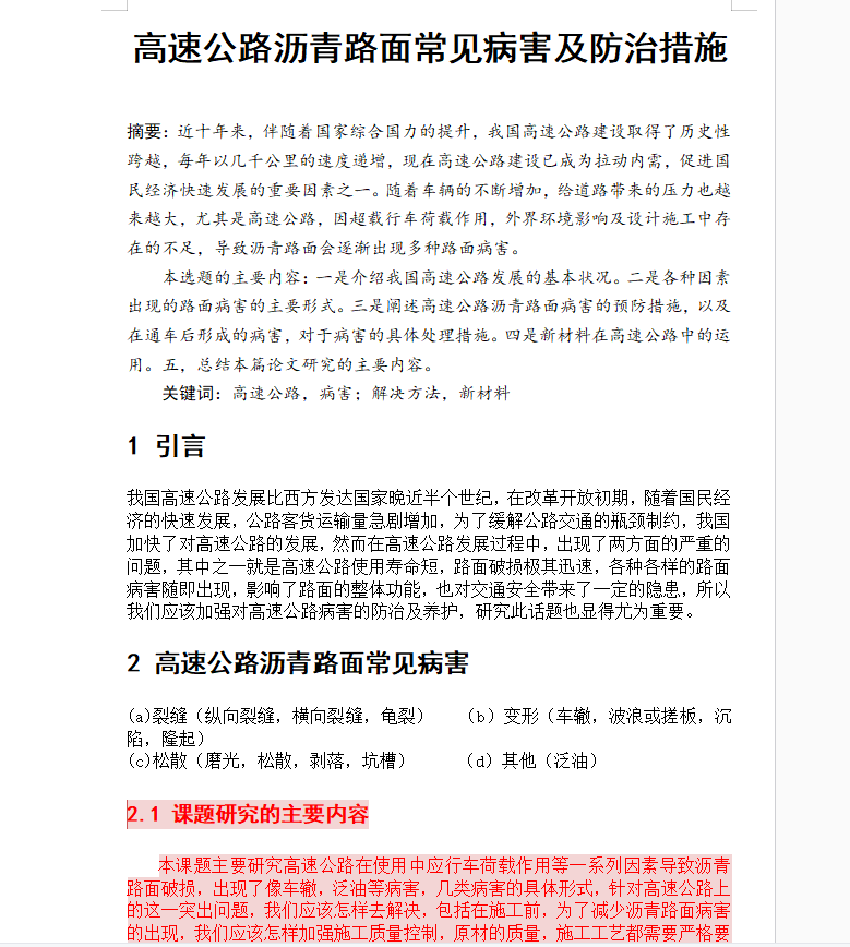本课题主要研究高速公路在使用中应行车荷载作用等一系列因素导致沥青路面破损,出现了像车辙,泛油等病害,几类病害的具体形式,针对高速公路上的这一突出问题,我们应该怎样去解决,包括在施工前,为了减少沥青路面病害的出现,我们应该怎样加强施工质量控制,原材的质量,施工工艺都需要严格要求。对于高速公路在通车后形成的一些病害,我们要拿出切实可行的方案,在通过对病害路段进行调查研究后,给出一套修补方案,及时的对已损坏路面修补恢复正常。近几年新材料在高速公路中也得到广泛应用,随即也会出现一些问题需要我们去解决。