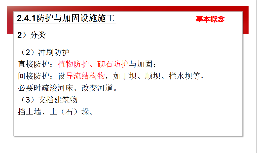 较陡的土质边坡、易风化破损的岩石边坡、桥涵附近坡面干砌片石护坡:受水冲刷较轻的河岸和路基。浆砌片石护坡:水流流速较大,有漂浮物冲击