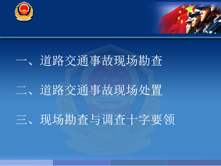 道路交通事故现场分析的主要内容:道路交通事故现场勘查、道路交通事故现场处置、现场勘查与调查十字要领。