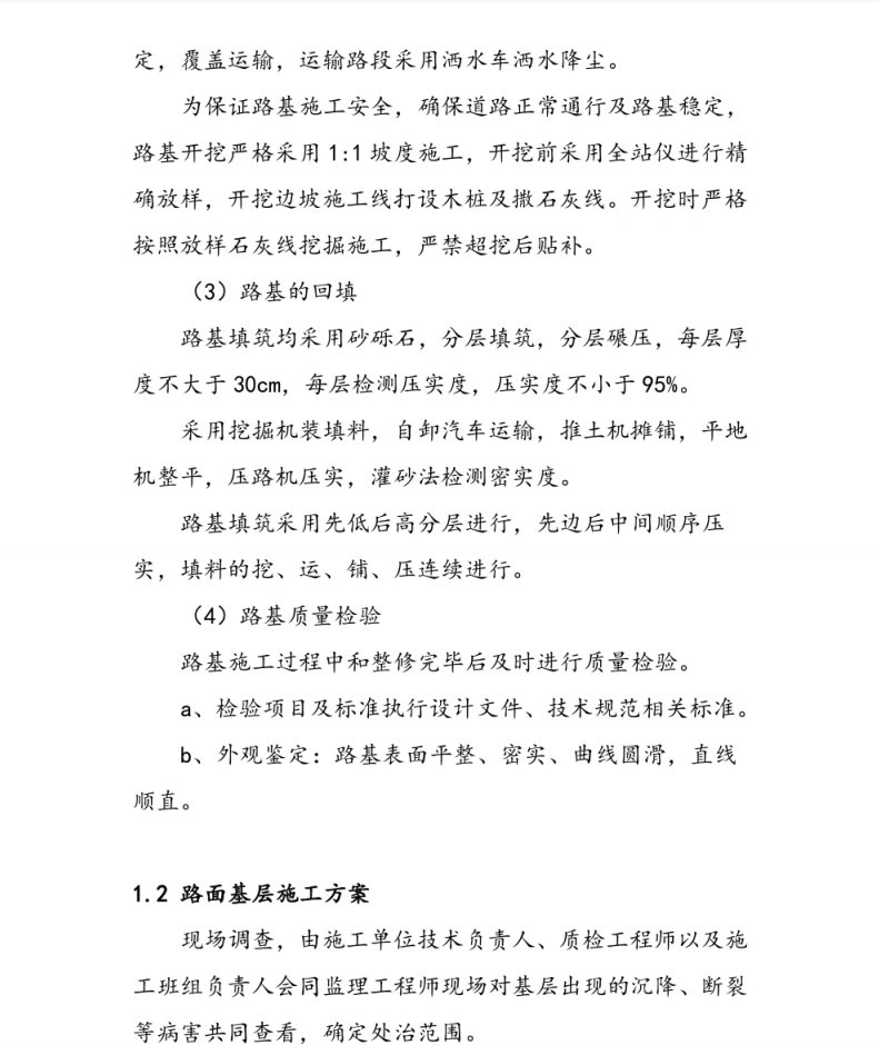 路基施工前按规范要求做好施工测量是保证工程质量的重要环节之一。本项目部在实际施工过程中,路中线用全站仪进行坐标放线控制,保证道路平面位置符合设计要求。在路中线恢复的测量过程中,应将平曲线交点、圆曲线起讫点、 人工构造物位置等主 要控制点进行可靠固定。
