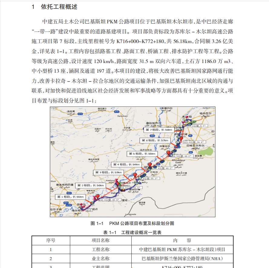 设计规划为双向六车道高速公路,设计速度120km/h,路基全宽31.5m,具体组成为:中分带2.6m,行车道3.65mx3x2,硬路肩3.0mx2,土路肩0.5mx2。中分带为新泽西护栏,行车道和硬路肩设计横坡2%,土路肩设计横坡4%。本项目全部为填方路基,设计填方量约为1120万m';柔性路面结构采用"AASHTO路面结构设计指南( 1993 )进行设计。设计年限为10年。