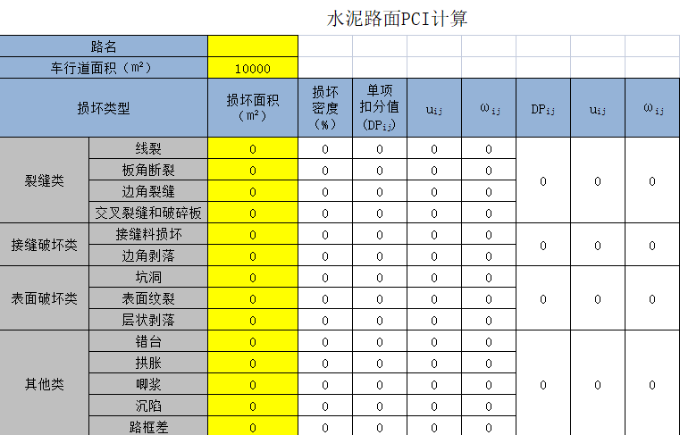 ³ÇÊеÀÂ·Â·ÃæPCI¼ÆËã(2016°æÑø»¤¹æ·¶)±í£¬Excel×Ô¶¯¼ÆËã¡£