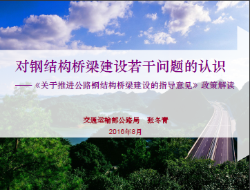 对钢结构桥梁建设若干问题的认识包括推广钢结构桥梁的目的、推进钢结构桥梁的工作目标、推进中重点关注的问题、充分发挥全行业力量