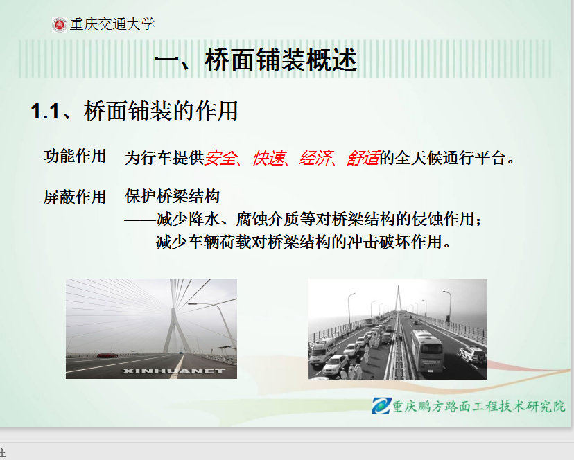 桥梁作为公路建设项目中的主要组成部分,其结构的耐久性及桥面的使用功能也越来越受到重视。合理和可靠的桥面铺装体系,不仅能为桥梁提供行驶性能良好而耐久的桥面,而且能作为桥面板的有效防护体系,防止水份的渗透,保证桥梁结构耐久性。