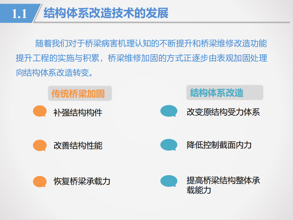 随着我们对于桥梁病害机理认知的不断提升和桥梁维修改造功能提升工程的实施与积累,桥梁维修加固的方式正逐步由表观加固处理向结构体系改造转变。