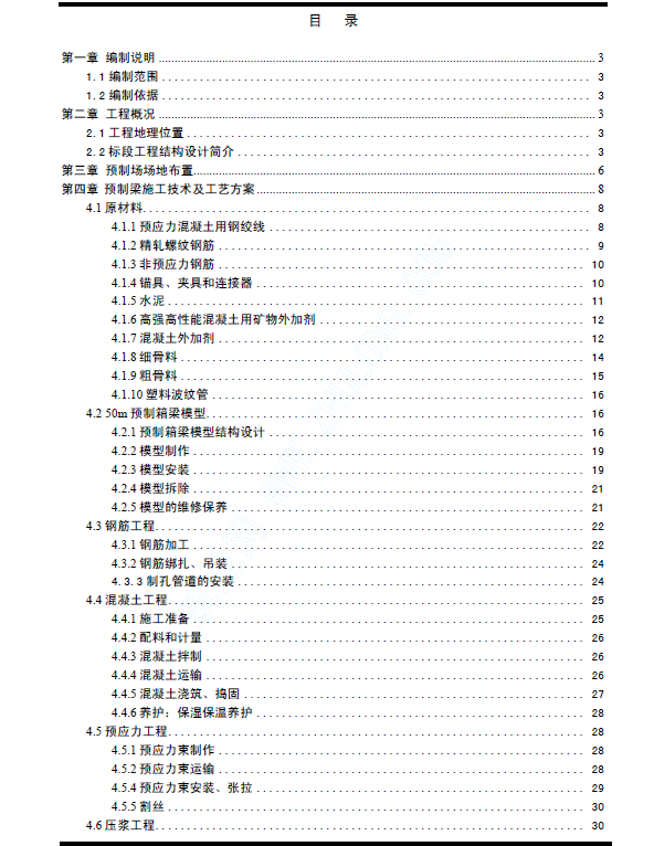 本施工技术及工艺方案编制范围xxx大桥X 合同50m 预制梁分部工程,包括预制场的制梁台座、存梁台座、运梁通道、生产房屋、拌合站的施工,箱梁模型的设计、制作,箱梁预制的各道工序,及箱梁的搬运。