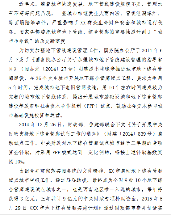 点击进入下载地下综合管廊PPP项目可行性研究报告 50p