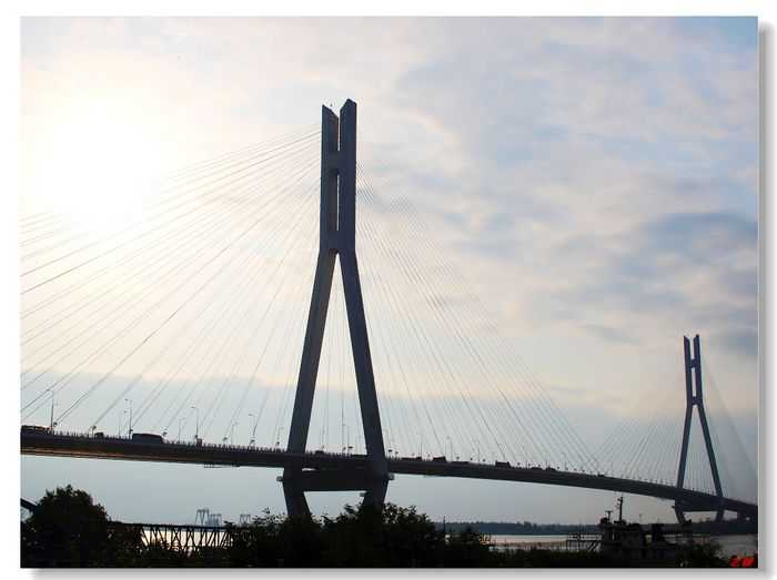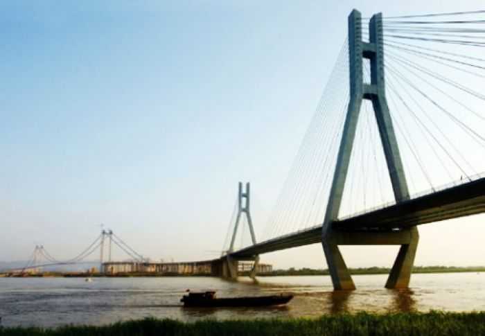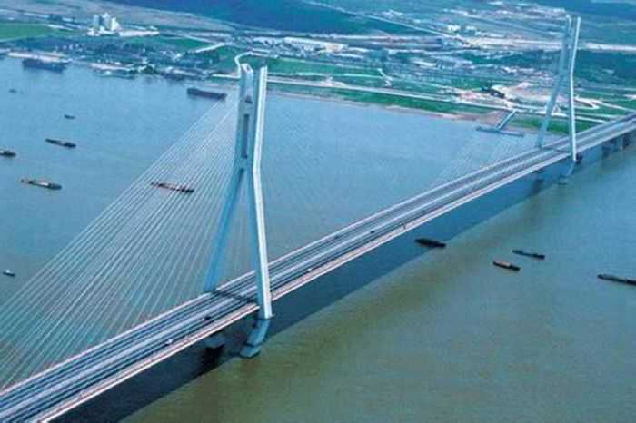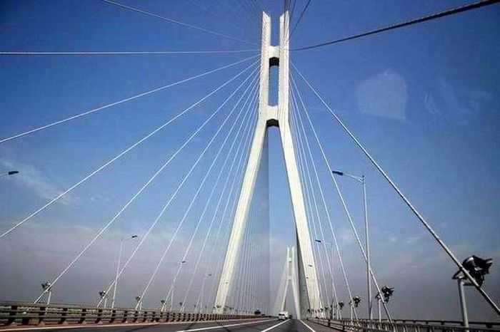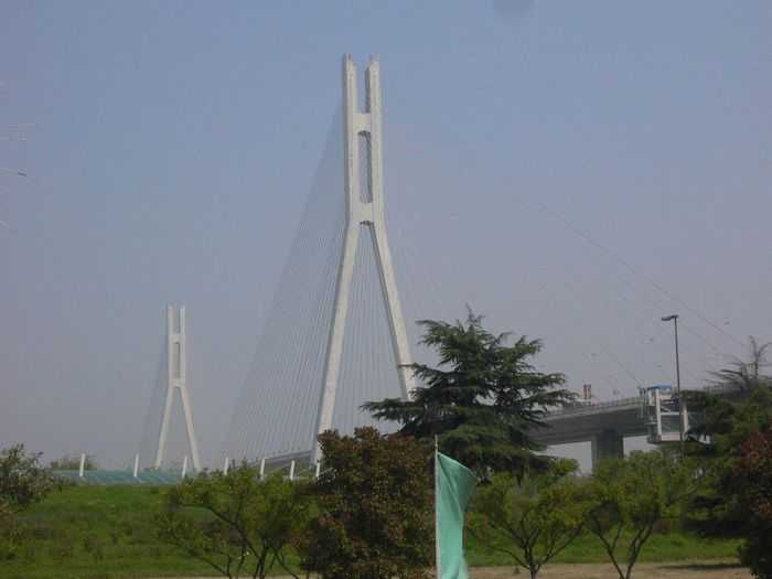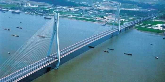其中:南汊大桥为钢箱梁斜拉桥,桥长2938米,主跨为628米,该跨径目前居同类桥型中“国内第一,世界第三”;北汊大桥为钢筋混凝土预应力连续箱梁桥,桥长2172米,主跨为3×165米,该跨径在国内亦居领先。全线还设有4座互通立交、4座特大桥、6座大桥。