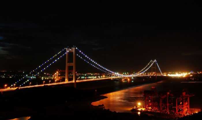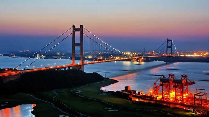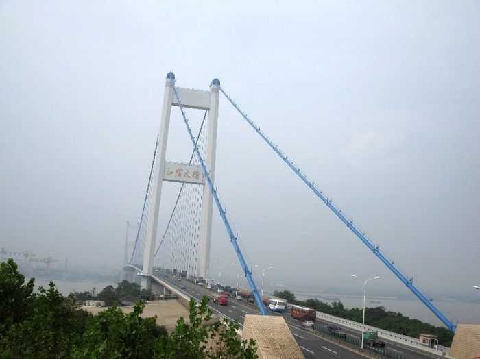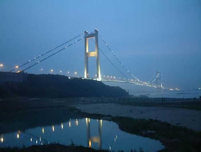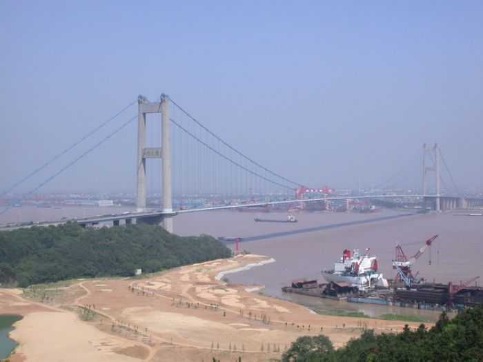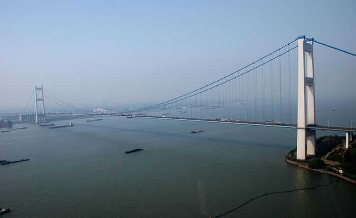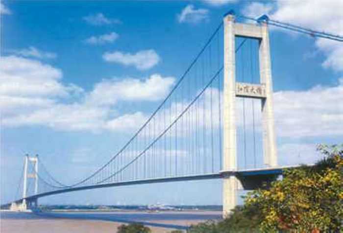 江阴长江公路大桥,位于江苏省江阴市黄田港以东3200米的西山,桥型采用主跨为1,385m钢悬索桥。为世界第四、中国第一大桥。1994年开工建设,1999年10月建成通车。