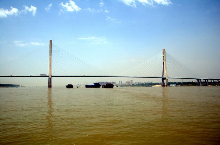 安庆长江大桥总投资13.174亿元,位于长江安庆段,全长5985.66米,主桥1040米,是万里长江上第35座变天堑为通途的桥梁,上距九江大桥164公里,下距铜陵长江大桥96公里。大桥全线按双向四车道、高速公路标准设计,设计时速100公里/小时。