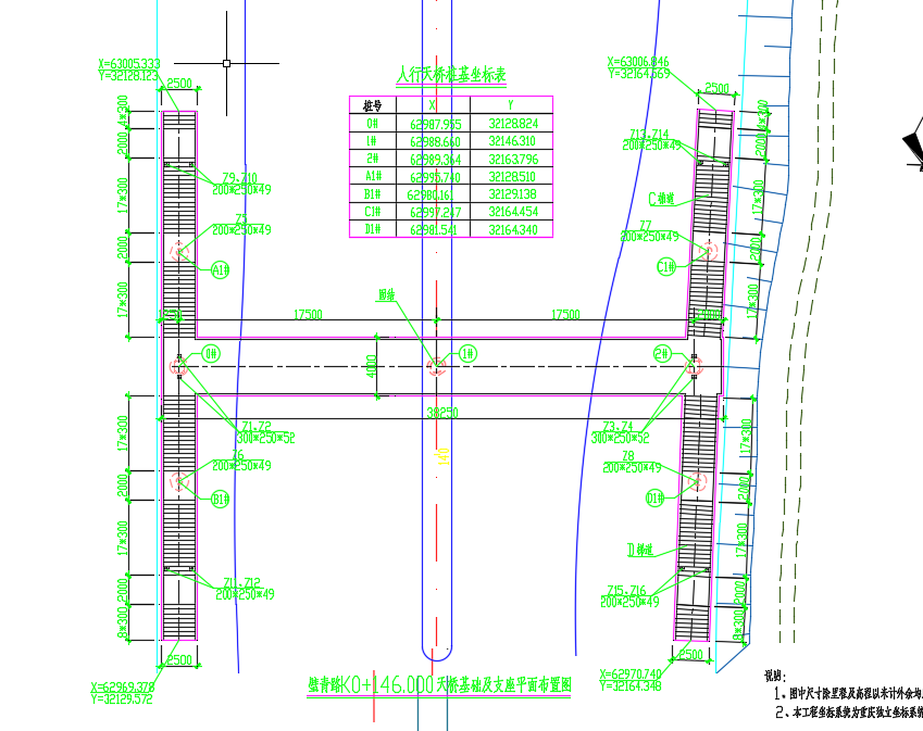穿山隧道工程桥梁及天桥施工图纸包括天桥平面布置图、天桥基础及支座平面布置图、天桥立面布置图、天桥地质横断面、天桥平面布置图、天桥基础及支座平面布置图、天桥立面布置图、天桥地质横断面、收费站专用天桥平面布置图、收费站专用天桥支座及基础平面布置图、天桥立面布置图、天桥钢箱梁构造、人行天桥桥墩及桩基构造、天桥梯道墩一般构造、天桥盖梁钢筋一般构造