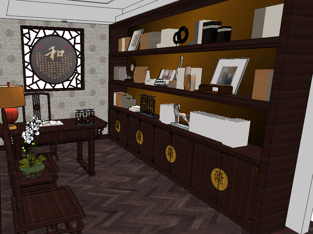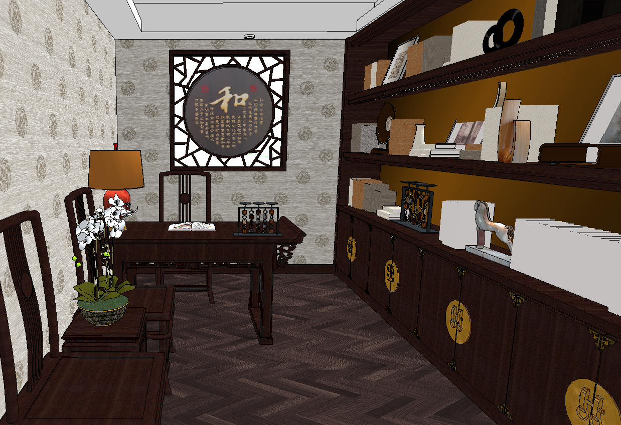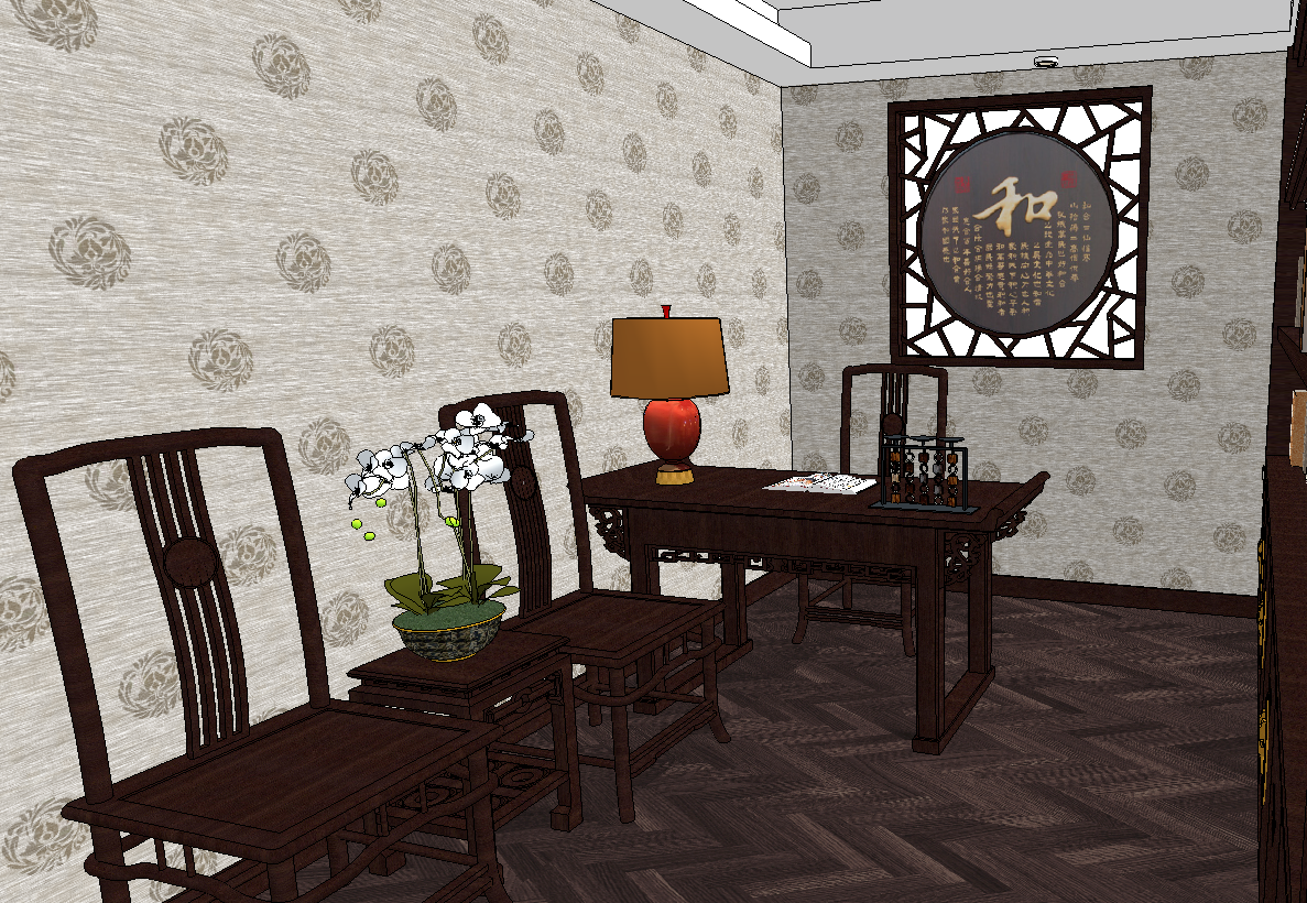 中式风格样板间书房装修SketchUp模型,供大家参考!