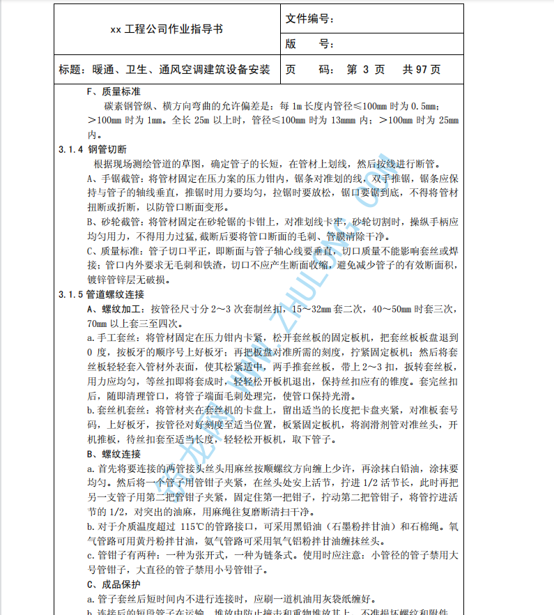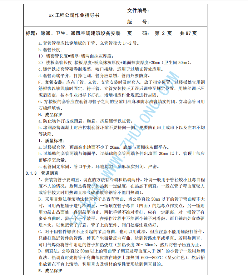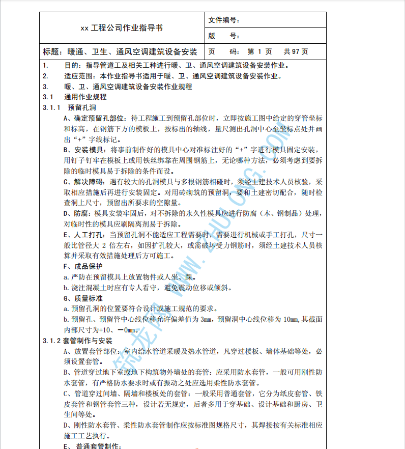 点击进入下载暖通、卫生、通风空调设备安装作业指导书 97P