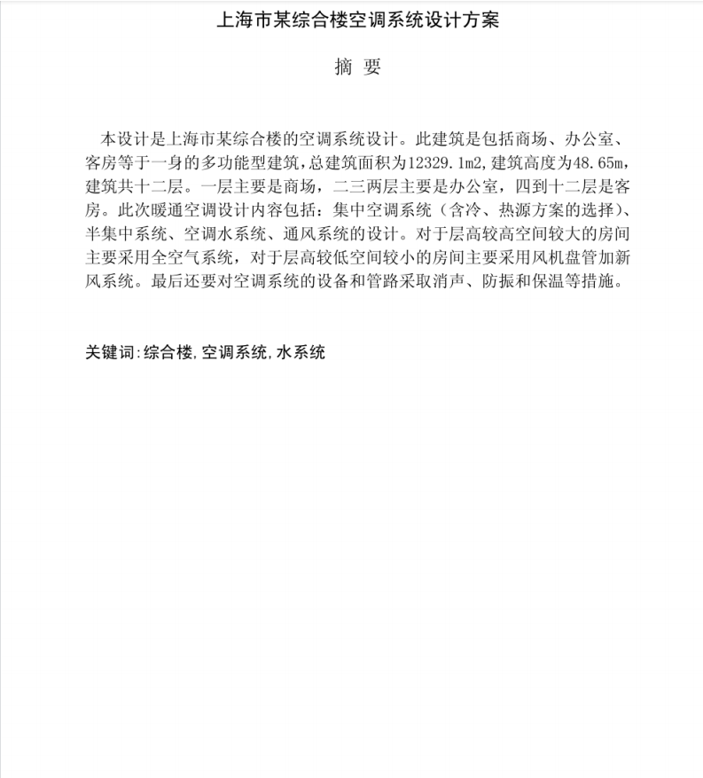 点击进入下载十二层综合楼空调系统毕业设计PDF 60P