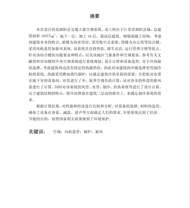 16层综合楼中央空调系统研究毕业设计PDF 67P