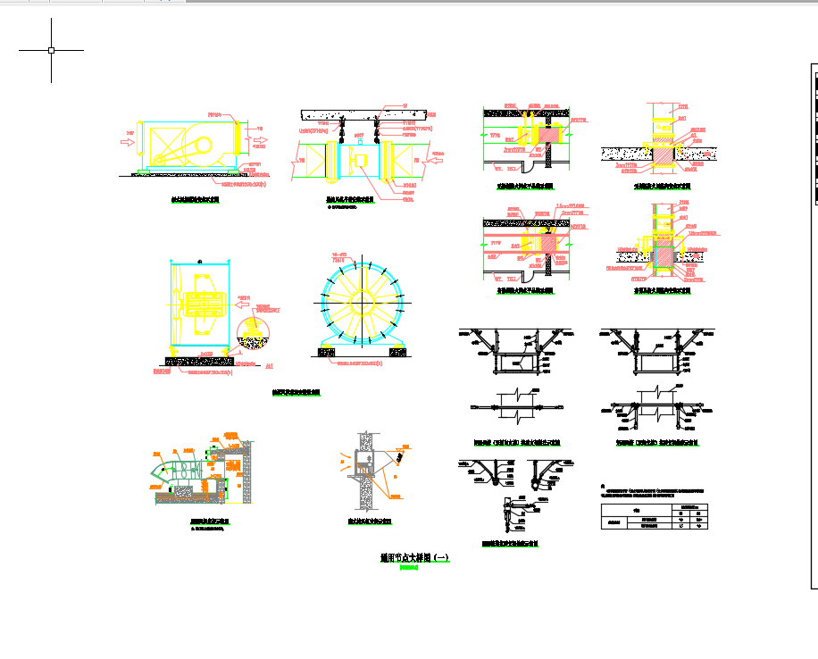 暖通、通用节点大样图包括:吊顶式空气处理机组吊装示意图、吊顶式空气处理机组风管接管示意图、空调室内机组接管示意图、冷凝水吊架示意图、冷媒管吊架示意图、管沟断面示意图、VRV空调室外机风扇导流风管示意图、基础平面示意图(二)、vrv空调室外机基础平面示意图、外墙百叶风口安装示意图、风道穿墙体预埋件示意图、车库排烟口接管示意图、风管连接示意图、常闭排烟口(阀)就地手动装置示意图、风管穿屋面示意图、风管穿楼板、下部排风口安装示意图、矩形支管、矩形管道变径、弯头示意图、弯头内部导流叶片示意图、管井内衬风管示意图、风管检修门示意图、柜式风机落地安装示意图、轴流风机吊顶安装示意图、无保温防火阀水平吊装示意图、无保温防火阀竖向安装示意图、轴流风机落地安装示意图、屋面风机安装示意图、壁式排风机安装示意图......