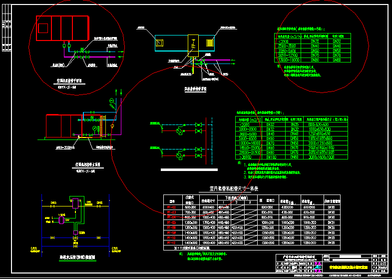 十一层肿瘤防治中心空调施工图纸,包括:平面图、接管大样图、屋面设备布置图、系统图等