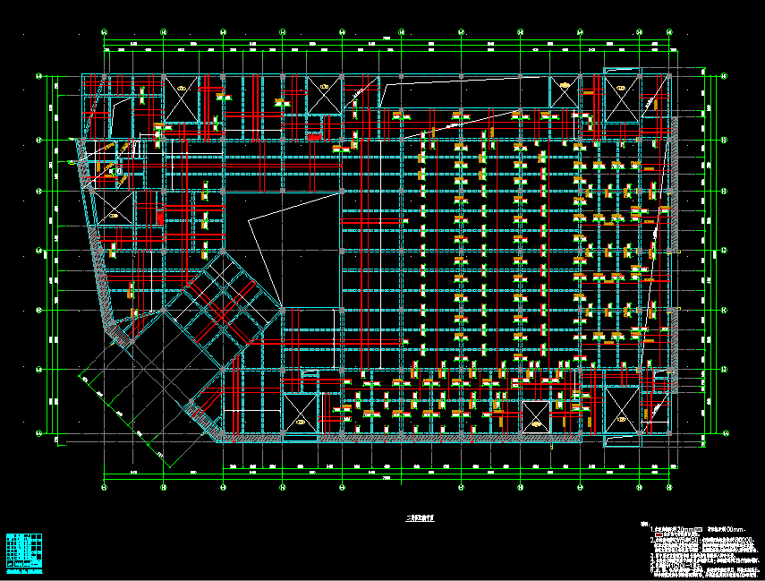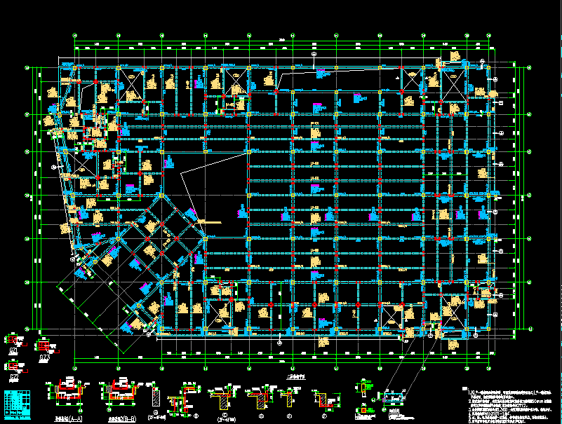 四层框架结构商业楼暖通施工图纸,包括:总平面图、地下车库施工图、结构施工图、基础详图、结构平面布置图、设备图纸