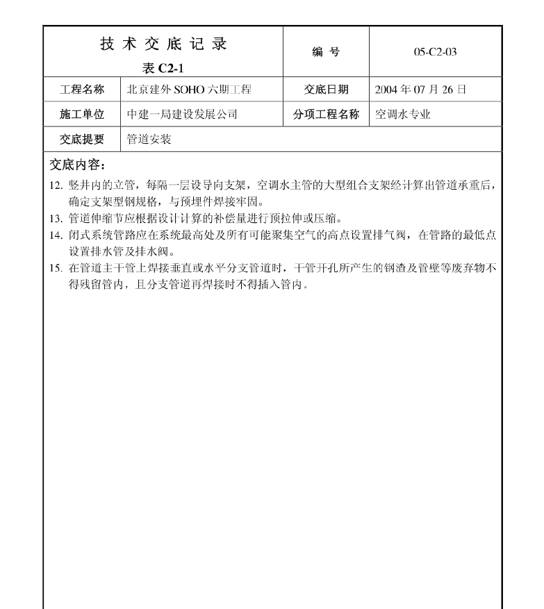 空调水系统的设备,管道,阀门,型号,规格,材质及连接形式应符合设计规定以及技术规格说明书。支吊架的固定不得影响结构安全,位置要正确,平整牢固;固定支架于管道接触应紧密,固定应牢靠。冷热水管道支,吊架之间设有绝热衬垫,其厚度不应小于绝热层厚度,宽度应大于支吊架支承面宽度,衬垫得表面应平整,衬垫的结合面的间隙应填实。钢管支吊架的间距符合质量验收规范GB50243-2002表9.3.8.大型支吊架施焊,不得有漏焊,欠焊或焊接裂纹等缺陷,管道对接缝与支吊架的间距应大于50MM..