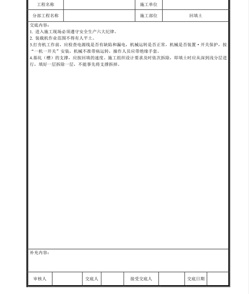 ½øÈëÊ©¹¤ÏÖ³¡±ØÐë×ñÊØ°²È«Éú²úÁù´ó¼ÍÂÉ¡£ÍÚÍÁÖз¢ÏֹܵÀ¡¢µçÀ¼°ÆäËûÂñÉèÎïÓ¦¼°Ê±±¨¸æ£¬²»µÃÉÃ×Ô´¦Àí¡£ÍÚÍÁʱҪעÒâÍÁ±ÚµÄÎȶ¨ÐÔ£¬·¢ÏÖÓÐÁÑ·ì¼°ÇãÌ®¿ÉÄÜʱ£¬ÈËÔ±Ó¦Á¢¼´À뿪²¢¼°Ê±´¦Àí¡£È˹¤ÍÚÍÁ£¬Ç°ºó²Ù×÷ÈËÔ±¼ä¾àÀë²»µÃСÓÚ2~3m£¬¶ÑÍÁÒªÔÚ1mÒÔÍ⣬²¢ÇҸ߶Ȳ»µÃ³¬¹ý1.5m¡£