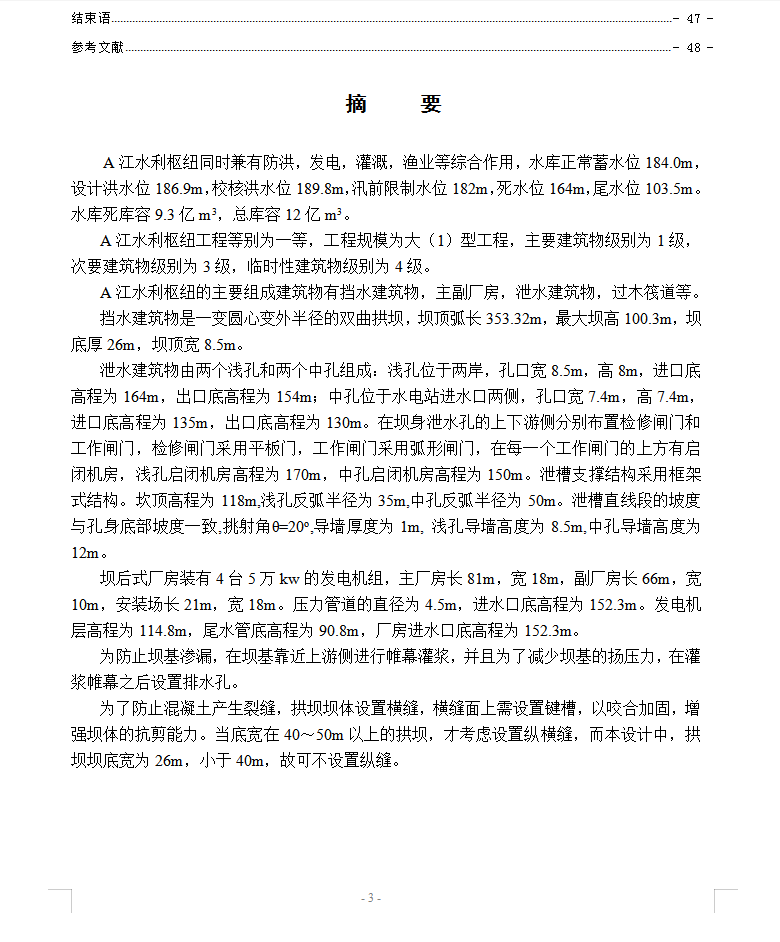 A江是我国东南地区的一条河流, 流向自西向东,流经A省南部地区,汇入东海,干流全长153km,流域面积4860平方公里。根椐流域规划拟建一水电站。本设计任务是对A江水利枢纽进行设计。