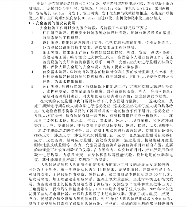 水利枢纽电站厂房安全监测设计毕业设计PDF 47P