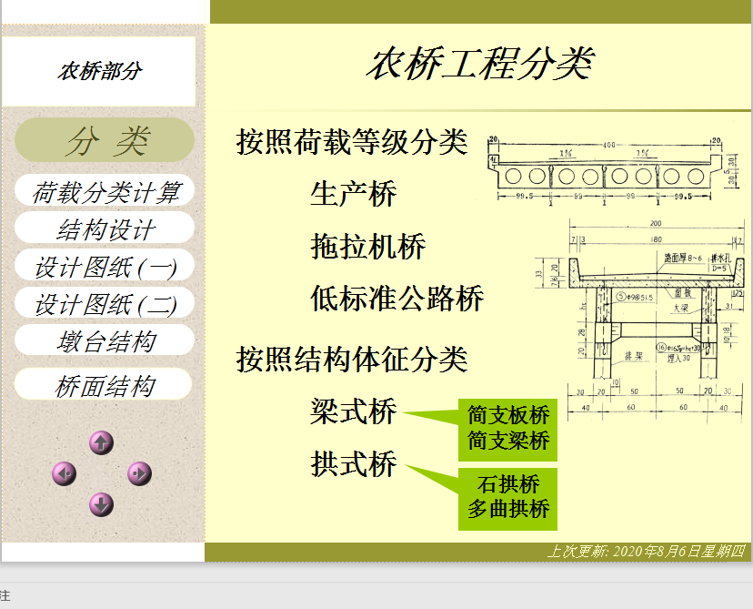 主要包括生产桥、拖拉机桥、低标准公路桥,按照结构体征分类、梁式桥、拱式桥