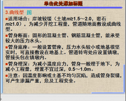 适用场合:渠道通过较深的复式断面河道或窄深河谷时,为减小施工困难,降低管道承受的最大压力水头,减小水头损失和缩短管道长度,在深槽部位建桥,管道敷设在桥面上或支承在桥墩等支承结构上。