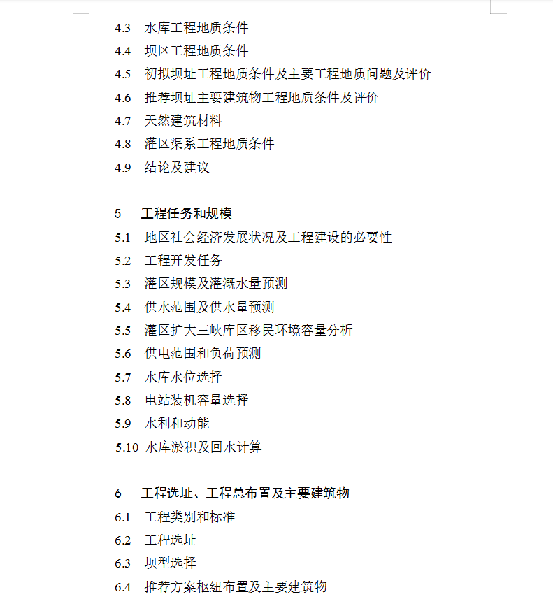 点击进入下载大(Ⅱ)型水库工程可行性研究报告 279P
