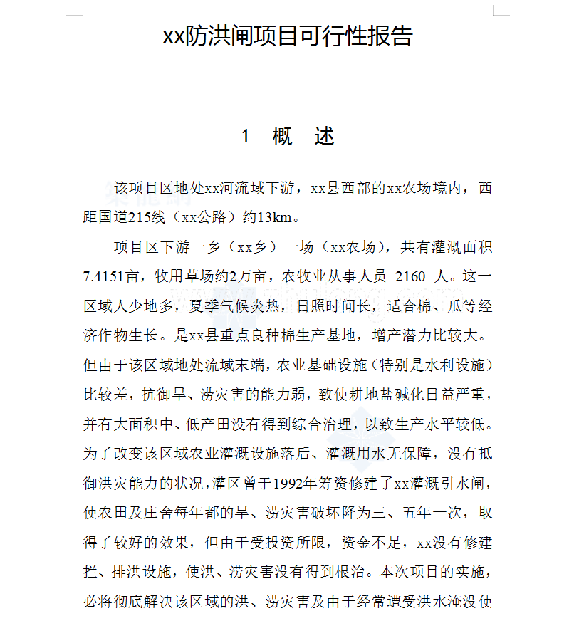 点击进入下载防洪闸项目可行性研究报告 36P