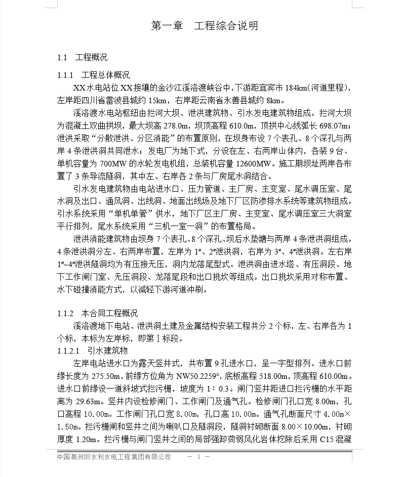 XX水电站位XX接壤的金沙江溪洛渡峡谷中,下游距宜宾市184km(河道里程),左岸距四川省雷波县城约15km,右岸距云南省永善县城约8km。